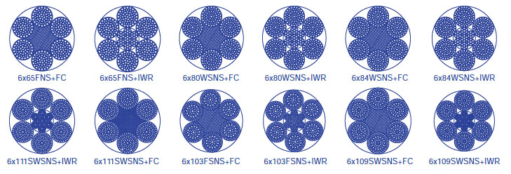 注:最小鋼絲破斷拉力總和= 鋼絲繩最小破斷拉力X1.250(纖維芯)或1.330(鋼芯)。