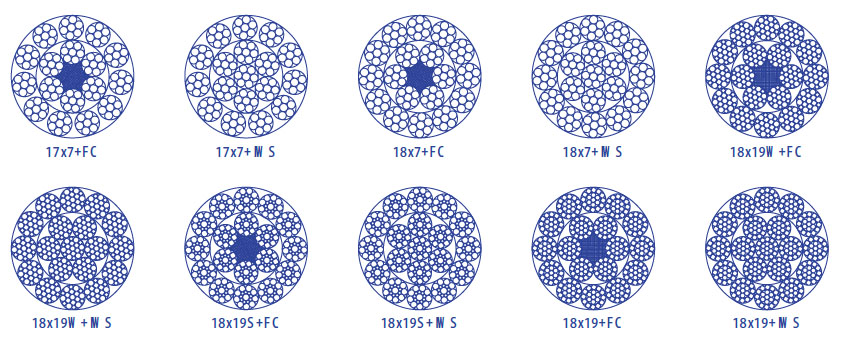 • 繩結(jié)構(gòu):17X7+FC 17X7+IWS 18X7+FC 18X7+IWS  18X19W+FC 18X19W+IWS 18X19S+FC 18X19S+IWS 18X19+FC 18X19+IWS